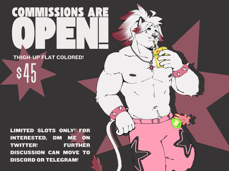 please refer to my ToS first before ordering a commission from me! I also have samples from this page.you may DM me thru Twitter, further conversations may go to Discord or TelegramCan draw: